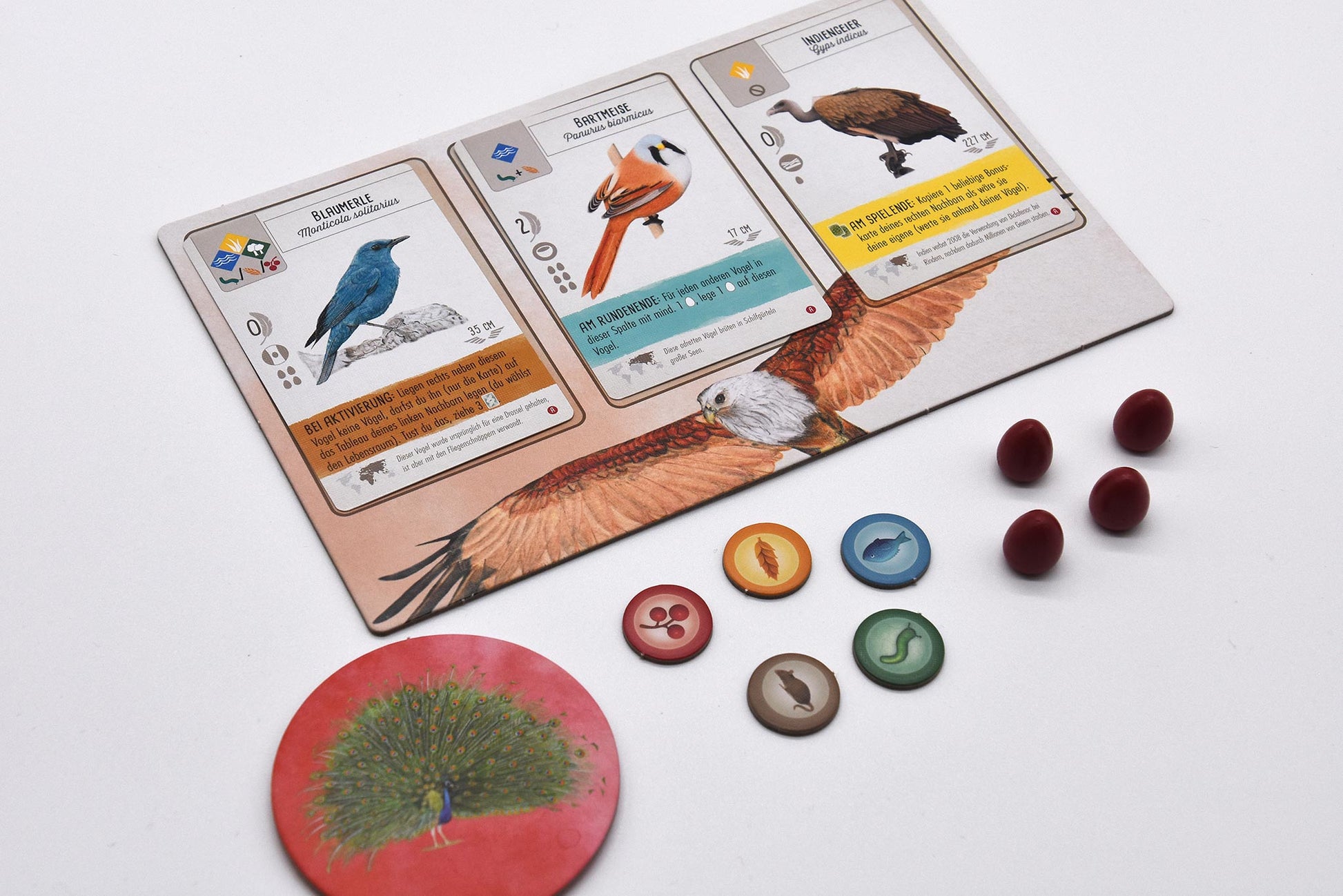 Vogelkarten geben Punkte, können Sofortaktionen haben oder aktivierbare Fähigkeiten oder geben Punkte für bestimmte Bedingungen.