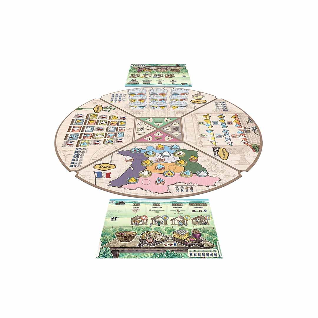 Fromage ist ein simultanes Worker-Placement-Kennerspiel, bei dem ihr Hart-, Weich- oder Blauschimmelkäse herstellt und Ressourcen aus dem Quadranten des Spielbretts sammelt, der euch gerade zugewandt ist. Sobald alle Spieler ihre Arbeiter platziert haben, dreht sich das Spielbrett, wodurch der hergestellte Käse reift und jeder von euch einen neuen Quadranten mit anderen Einsatz- und Punktemöglichkeiten erhält. Lasst ihr euren Käse schneller reifen und bekommt ihn schon nach einem Zug zurück oder produziert ihr hochwertigeren, länger gereiften Käse, aber müsst dabei bis zu drei Züge lang auf euren Arbeiter verzichten? Nebenbei könnt ihr eure asymmetrischen Spielertableaus ausbauen und Aufträge von Kunden erfüllen, um noch erfolgreicher zu werden.