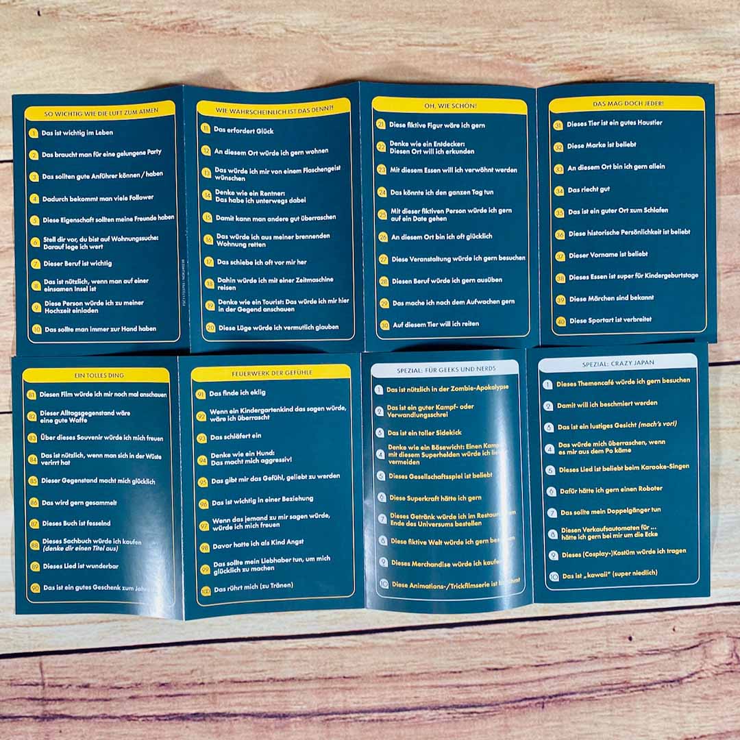 Eignet sich auch sehr gut als Kennenlernspiel, um miteinander ins Gespräch zu kommen.