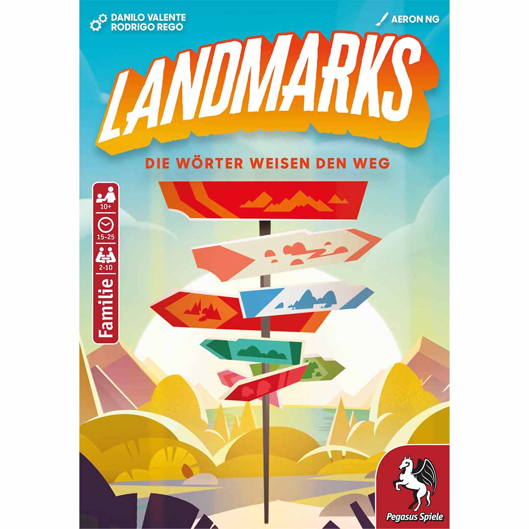 Landmarks lässt sich kooperativ oder im kompetitiven Teammodus mit zwei Teams spielen, und enthält 150 Startkarten in drei verschiedenen Schwierigkeitsstufen.