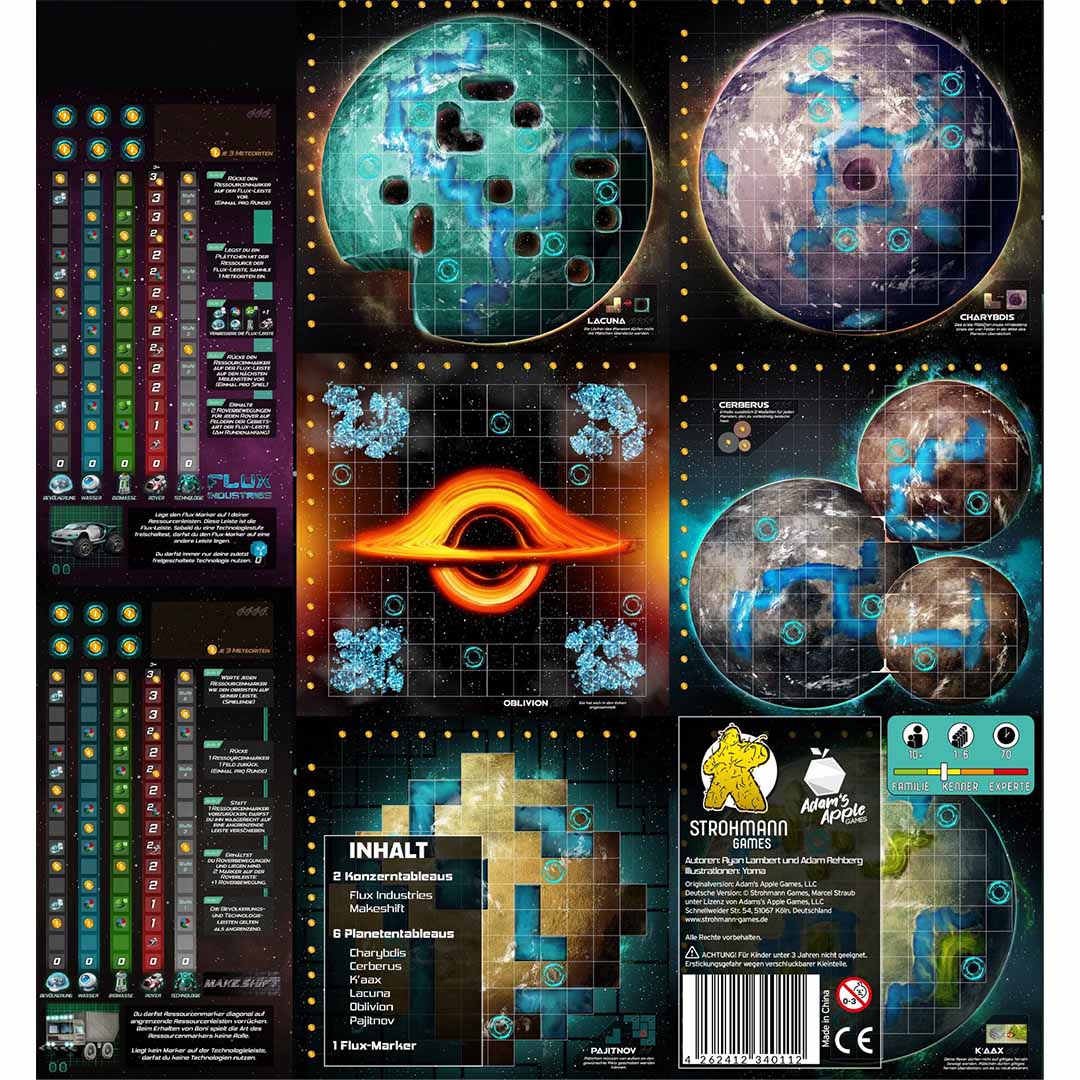 Das Add-on beinhaltet 6 neue Planeten und 2 neue Konzerne, die originär nur in der exklusiven Kickstarter Deluxe Edition enthalten waren.