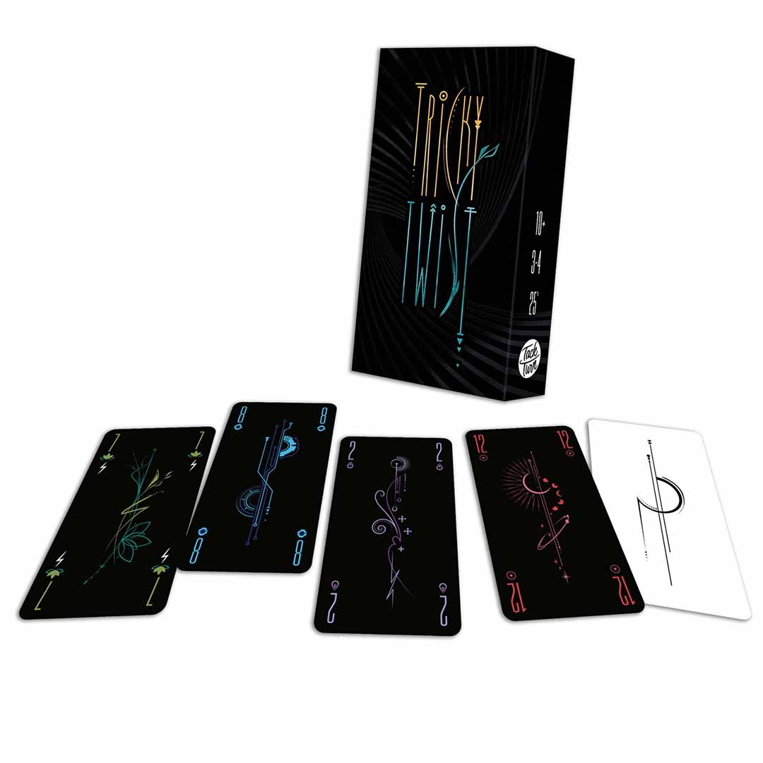 Bei Tricky Twist ist es oft wichtiger, Stiche zu verlieren als sie zu gewinnen. Wenn es Ihnen gelingt, die gespielte Karte zurückzuholen, kommt sie als „falscher Stich“ offen zu Ihnen zurück. Um Ihre Siegpunkte zu maximieren, müssen Sie nicht nur die Anzahl Ihrer Stiche und falschen Stiche ausgleichen, sondern auch die Karten, die Sie in falsche Stiche verwandelt haben, so optimieren, dass zum Beispiel alle Ihre falschen Stiche eine perfekte Wertefolge bilden. Einfach teuflisch...